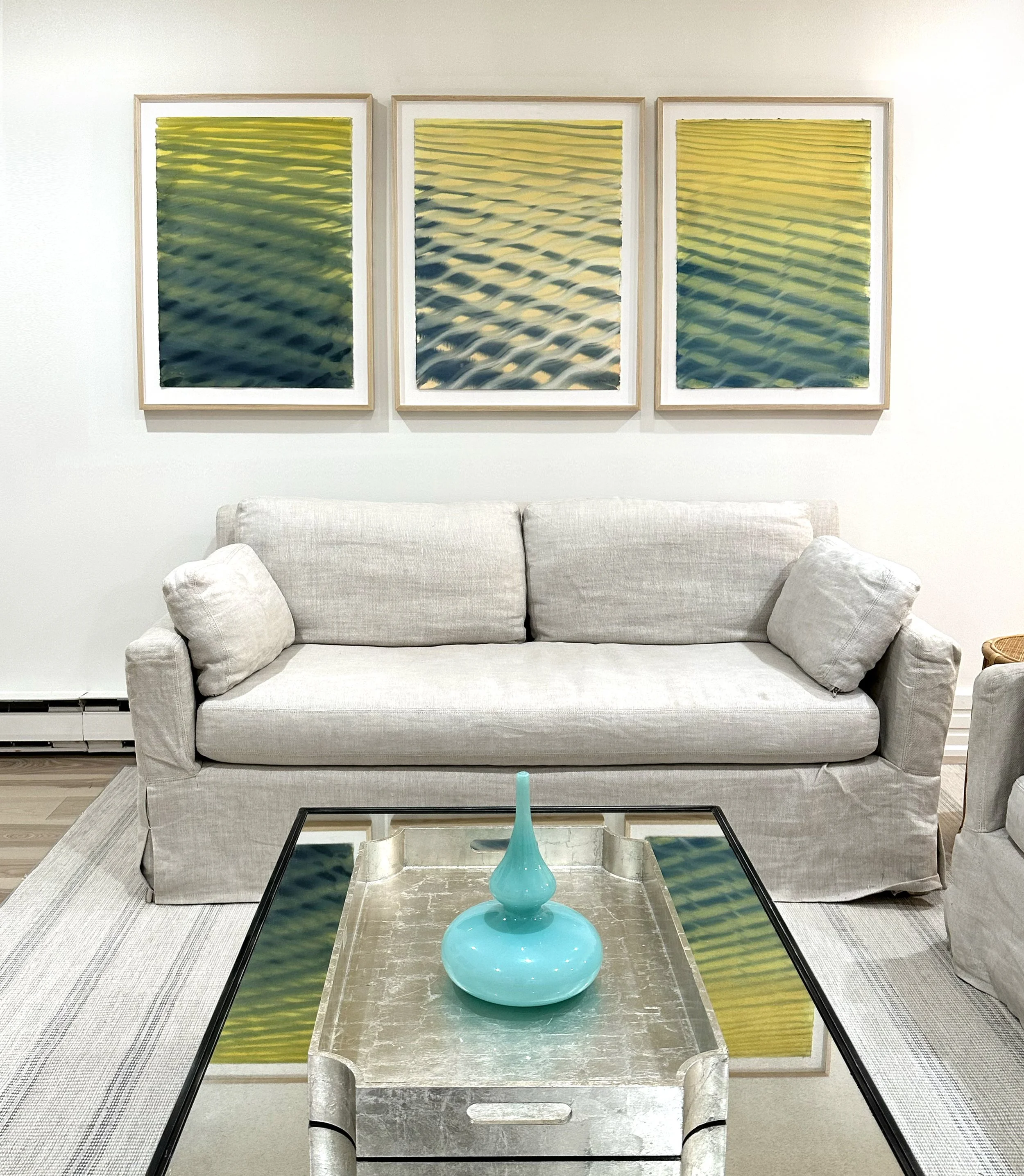 MORNING MOVEMENT, watercolor triptych, each 22” x 30”